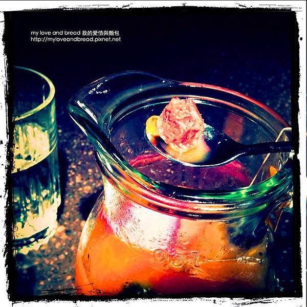 卻發現,除了蘋果、鮮橙肉、冰檸檬和百香果肉之外,店家還用了話梅來調製果茶的。