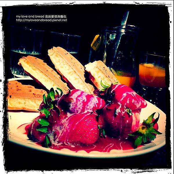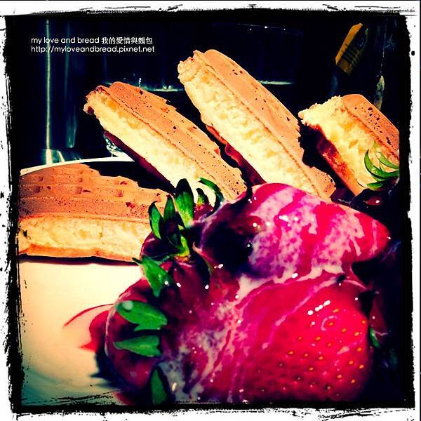 就這樣,吃過三明治後兩口子聊了好一會,我倆的草莓冰淇淋鬆餅才到。
